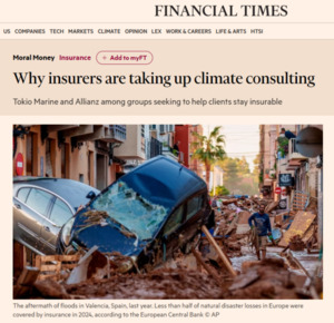 파이낸셜타임스(FT)는 최근 ‘기후 리스크의 복합화로 인해 보험사가 사후 보상자가 아닌, 사전 위험 관리자(Climate Consultant)로 진화하고 있다’는 흥미로운 분석을 내놓았다.전통적으로 보험은 손실이 발생한 이후의 복구를 담당했다. 그러나 요즘 기후 위기는 이 순서를 완전히 뒤집어 놓고 있다는 것이다.이런 변화의 배경에는 혹독한 현실이 있다. 기후변화로 인한 손실 규모가 매년 기하급수적으로 증가하면서, 보험사가 감당할 수 있는 한계를 넘어섰기 때문이다.캘리포니아의 산불, 유럽의 홍수, 일본의 태풍은 더 이상 ‘예외적 사